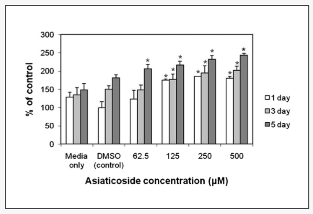 ● Asiaticoside thúc đẩy tăng sinh nguyên bào sợi theo nồng độ.