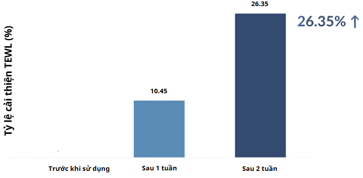 => Kết luận: Mức độ cải tiến TEWL sau 2 tuần: tăng 26.35%