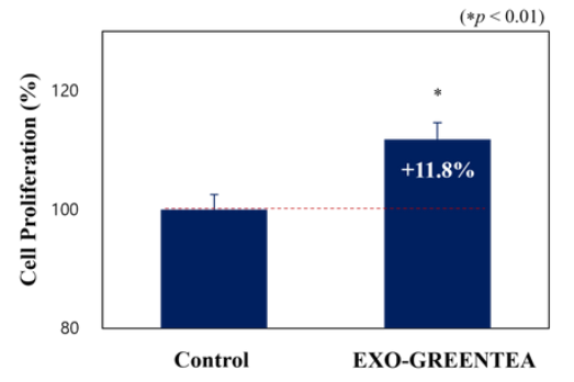 • Polyphenol trong trà xanh không chỉ giúp trung hòa stress oxy hóa mà còn hỗ trợ thúc đẩy quá trình phục hồi tế bào da. Khi được ứng dụng dưới dạng exosome, các hoạt chất này được phân phối hiệu quả hơn, tăng cường tác động sinh học ở cấp độ tế bào.