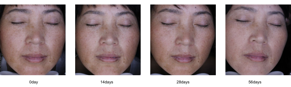 => Giá trị trung bình của △L trước khi sử dụng là 62,11. Sau khi sử dụng trong 28 ngày, △L tăng 5,01% vào ngày thứ 56 so với trạng thái ban đầu. Giá trị trung bình của △E là 59,69 trước khi sử dụng. Sau khi sử dụng trong 28 ngày, △E tăng 4,43% vào ngày thứ 56 so với trạng thái ban đầu