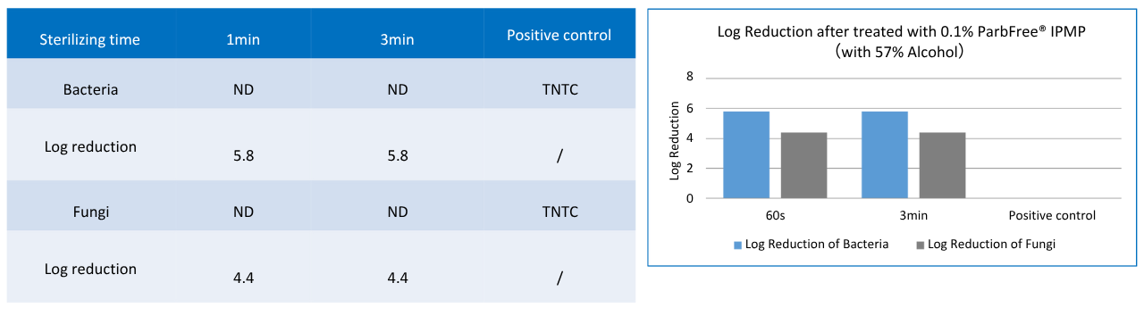 Kết hợp 0.1% IPMP và 57% ethanol có hiệu quả tương đương sau 60 giây và 3 phút.