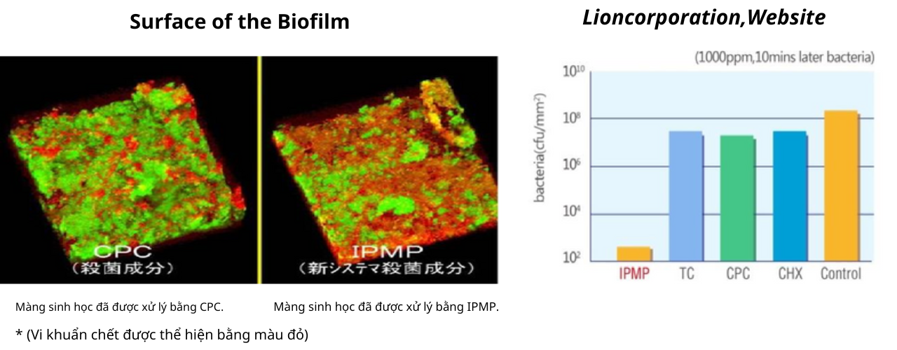Nghiên cứu so sánh cho thấy IPMP hiệu quả hơn Triclosan (TC) và CPC trên mô hình biofilm răng miệng.