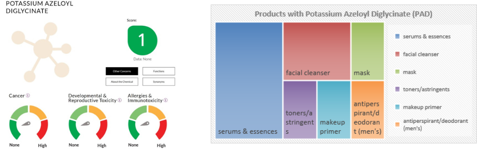 b. Potassium Azeloyl Diglycinate (PAD) không cho thấy nguy cơ rõ rệt về ung thư, độc tính sinh sản & phát triển, dị ứng hoặc độc tính miễn dịch.