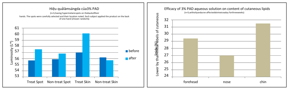 a. Hiệu quả làm sáng da và cân bằng bã nhờn của dung dịch PAD 3% trong nền nước