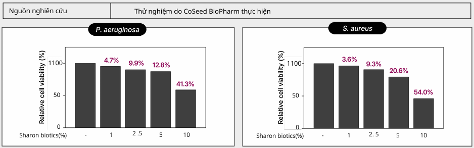 => Studies show that Sharon Biotics strongly inhibits two common harmful skin bacteria, P. aeruginosa and S. aureus, in a dose-dependent manner, helping to protect the skin and maintain a balanced microbiome.