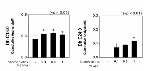 • Studies indicate that Sharon Biotics increases SPTLC1 expression by 40.1%, thereby enhancing ceramide production and reinforcing the skin’s protective barrier.