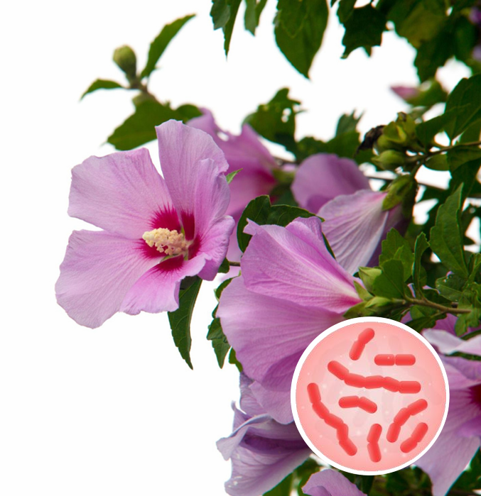 • Sharon Biotics is a plant-based probiotic active ingredient extracted from Korean hibiscus (Hibiscus syriacus) – a flower that symbolizes resilience and adaptability in the harsh climate of Jeju Island.